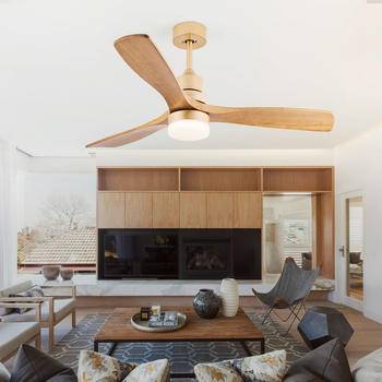 Champagne ouro estilo luxuoso teto ventilador com luz madeira maciça lâmina silenciosa reversível motor Dimmable luz memória